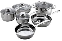 - 10-piece set includes 2-quart covered saucepan 2-1/2-quart covered saucepan 8-inch open skillet 9-1/2-inch open skillet 11-inch deep suate pan with lid and 5-1/2-quart covered stock pot